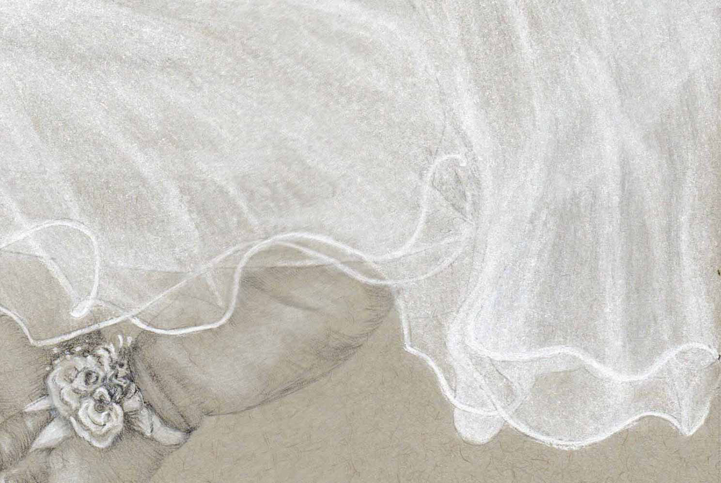 Figura humana. Lápices de grafito y pastel blanco sobre papel tonal gris.