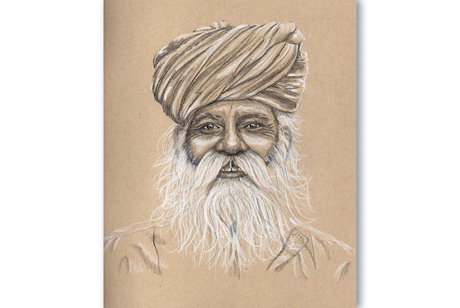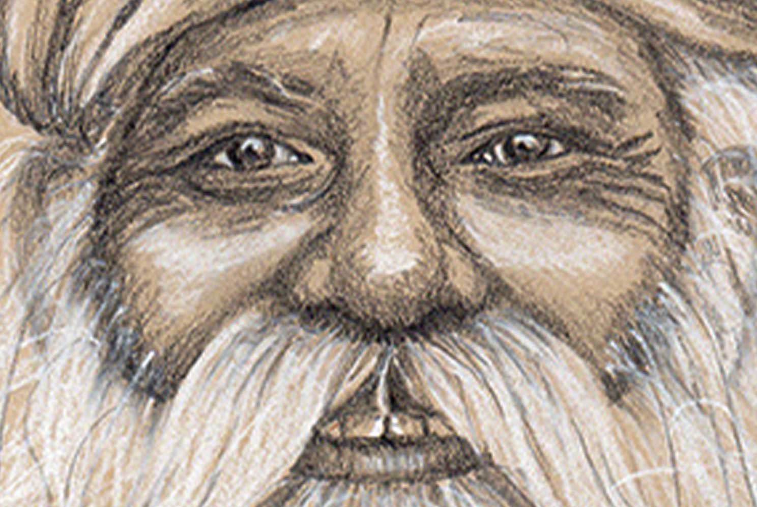Retrato • Lápices de ébano y pastel blanco sobre papel tonal kraft.