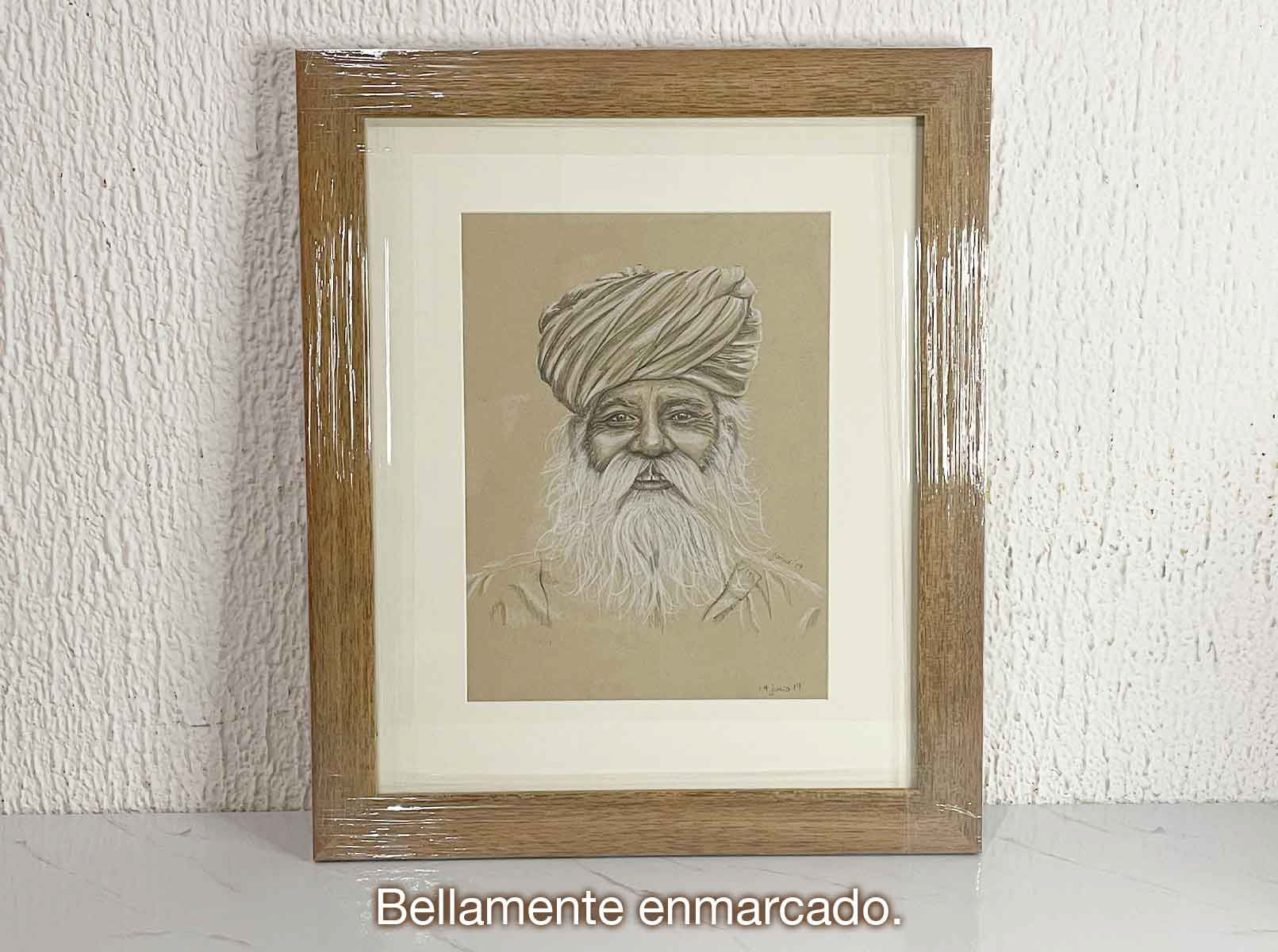 Retrato • Lápices de ébano y pastel blanco sobre papel tonal kraft • Bellamente enmarcado