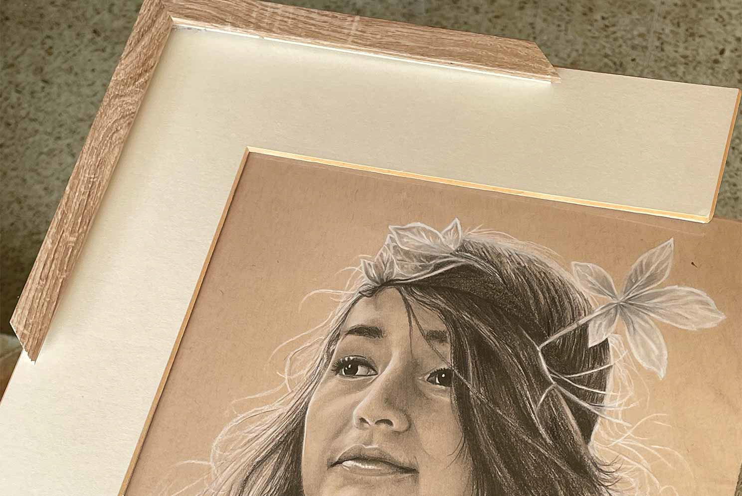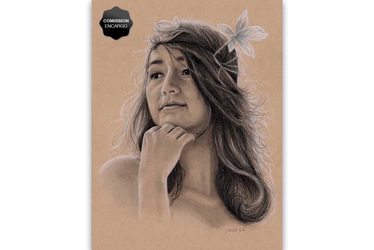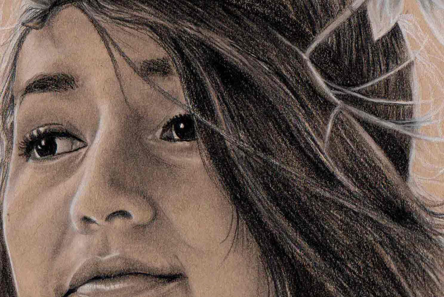 Lápices de grafito y pastel blanco sobre papel tonal kraft.