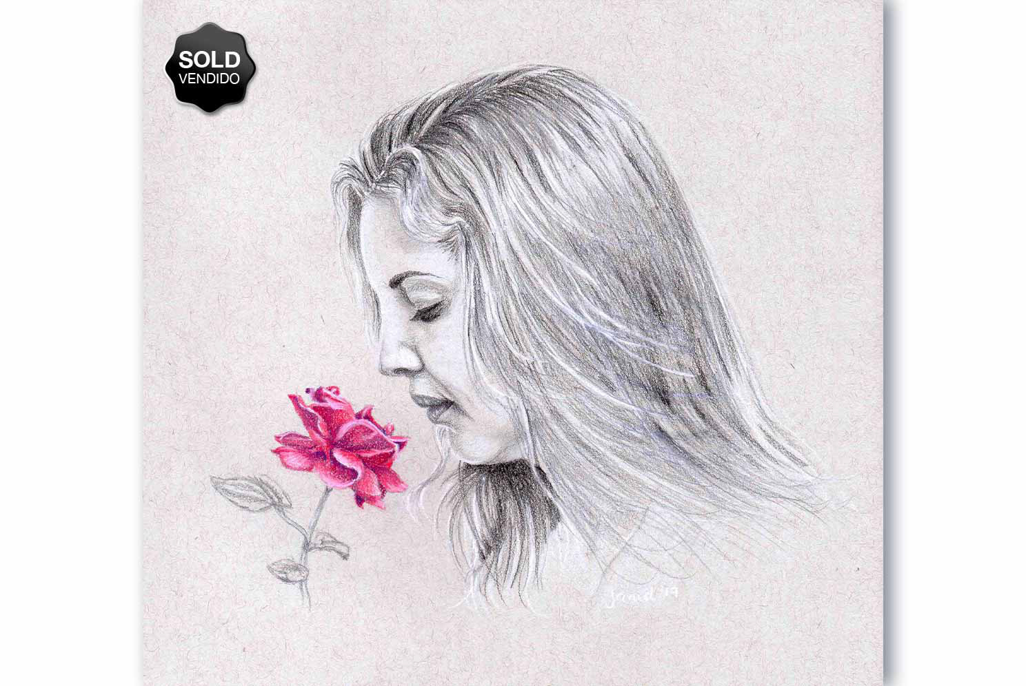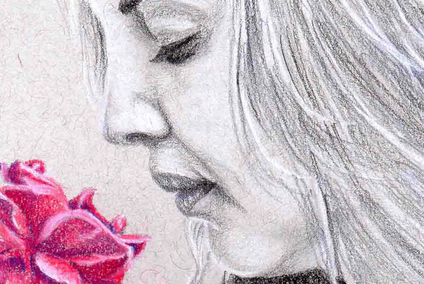 Lápices de grafito y pastel sobre papel tonal gris.