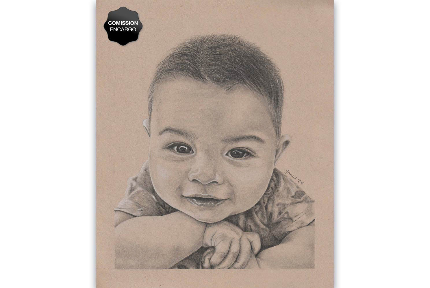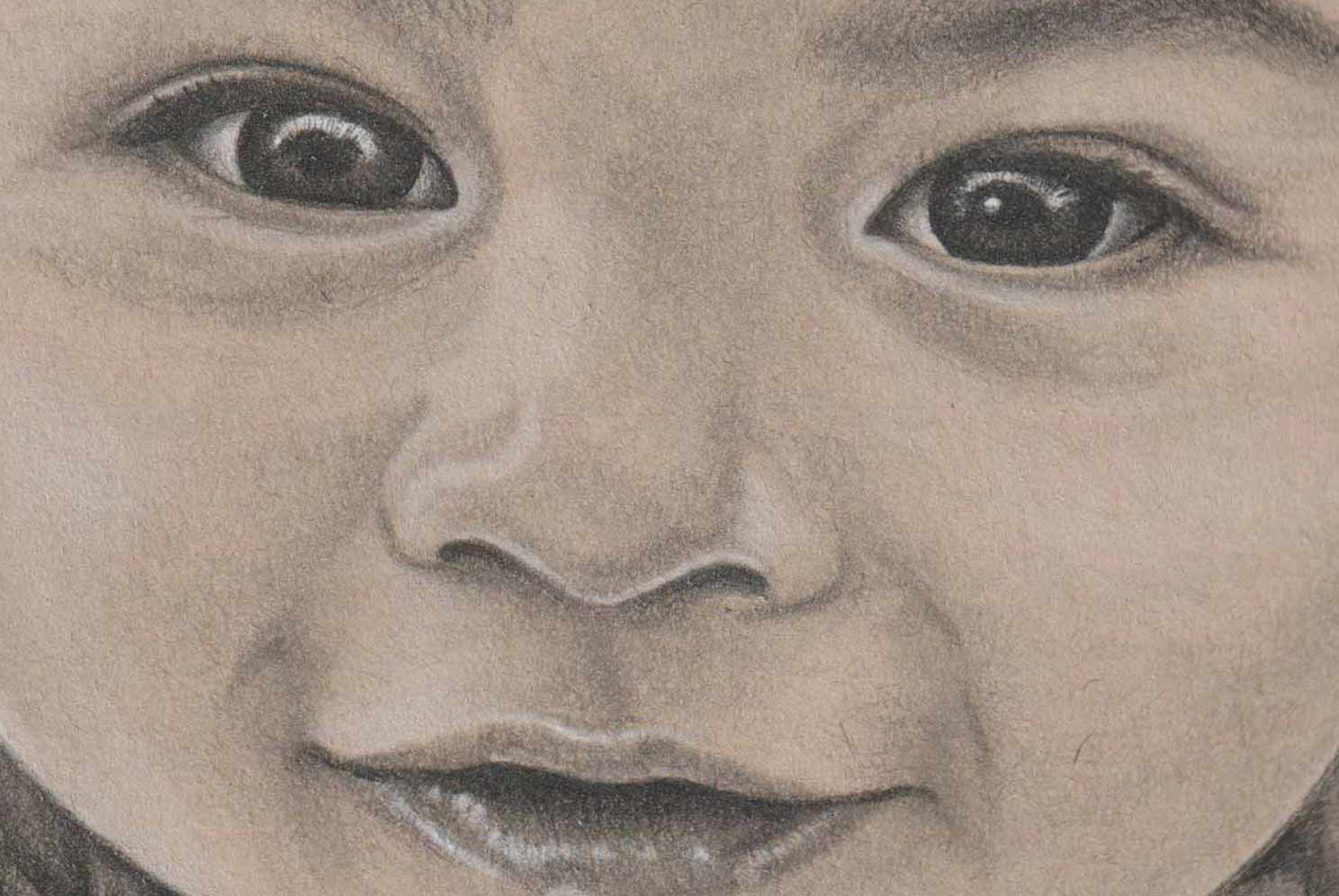 Lápices de grafito y pastel blanco sobre papel tonal kraft.