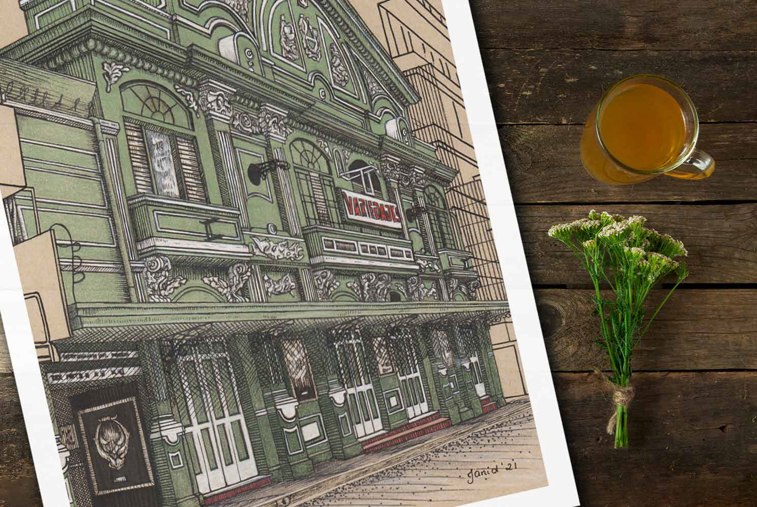 Posters impresos en la más alta calidad. Se puede ver la textura de los dibujos originales, los cuales fueron hechos entre 2019-2021 con plumilla y lápices pastel a color sobre papel tonal