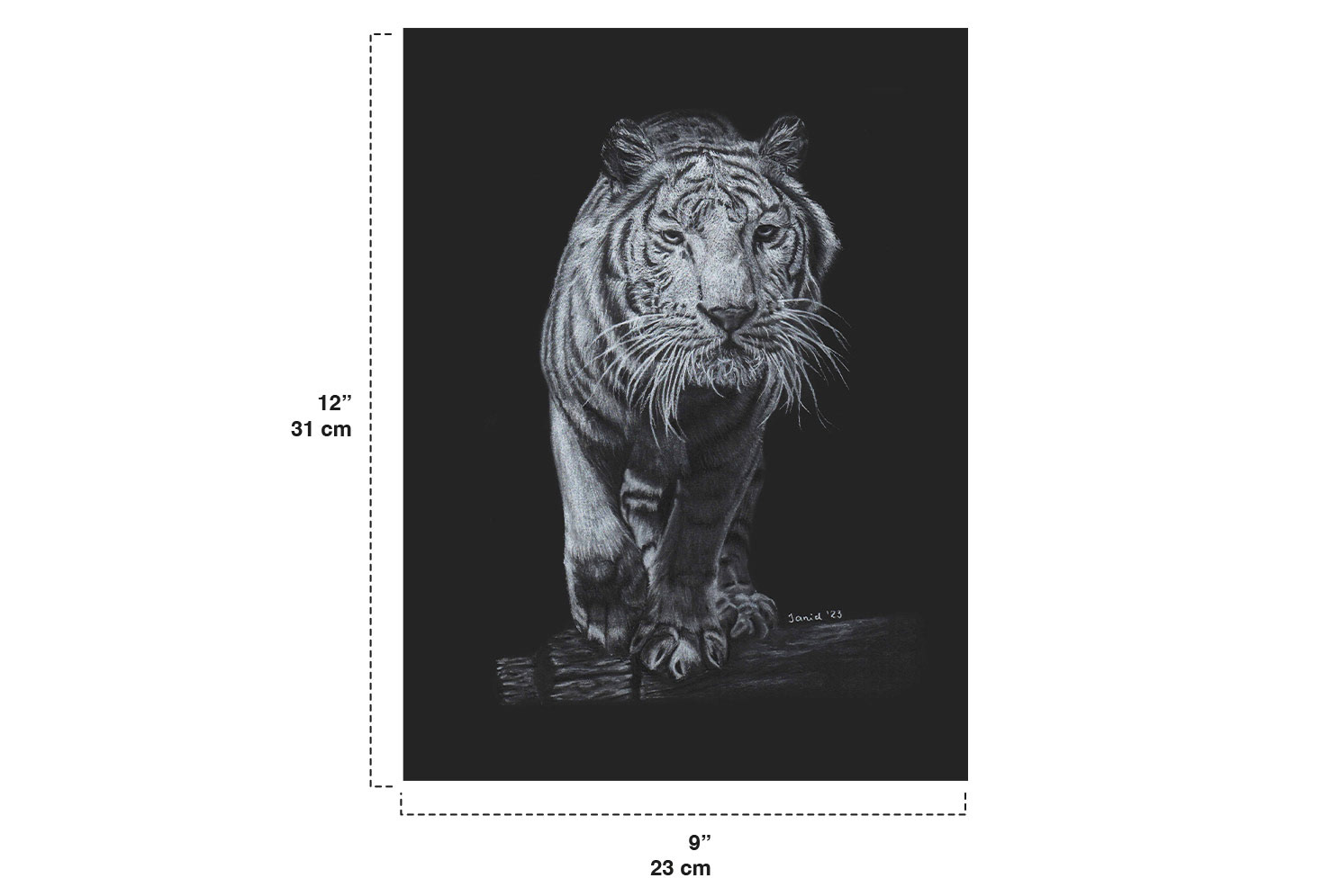 Figura animal • Serie: Especies amenazadas y en peligro de extinción • Lápices de creta y pastel blanco sobre papel negro • DISPONIBLE EN FINE ART PRINT